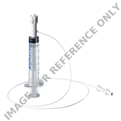Alphacard® is a single-use syringe to be filled with saline, equipped with a connecting cable for ECG based central venous catheter tip placement and position control.