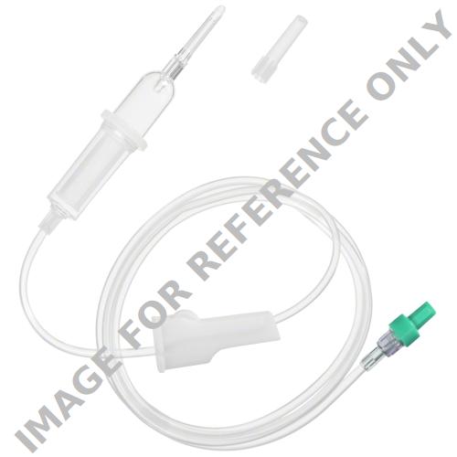Non-vented blood administration set for the administration of blood and blood components stored in flexible bags for gravity administration.