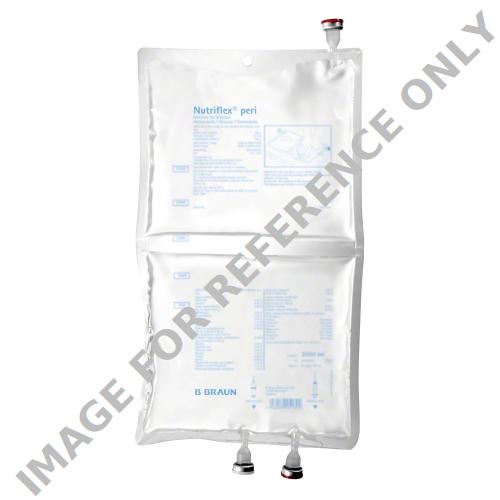 Parenteral nutrition solution containing amino acids, glucose, and electrolytes in a two-chamber bag.