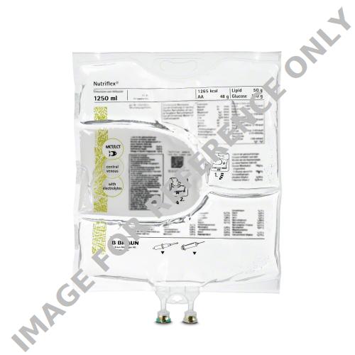 Central venous parenteral nutrition emulsion containing amino acids, glucose, MCT/LCT fat emulsion, and electrolytes in a three-chamber bag.