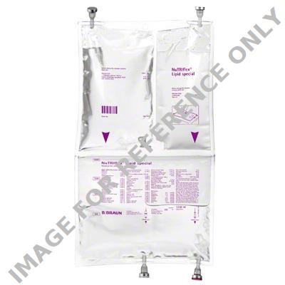 Central venous parenteral nutrition emulsion containing amino acids, glucose, MCT/LCT fat emulsion, and electrolytes in a three-chamber bag.