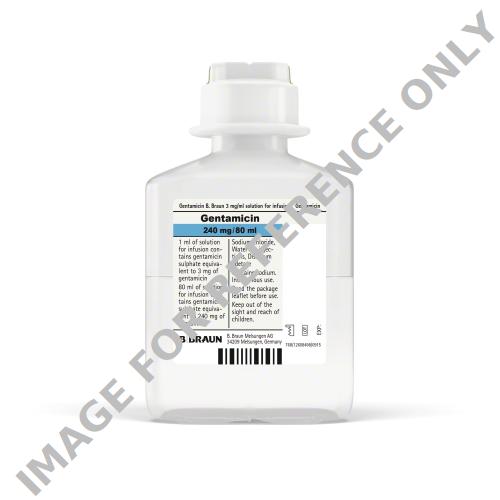 Gentamicin B. Braun is a pre-mixed formulation ready for direct and convenient infusion. The Ready to (inf)use solutions are available in Ecoflac® plus container with a content of 80 mg/80 ml (1 mg/ml), 240 mg/80 ml (3 mg/ml) and 360 mg/120 ml (3 mg/ml).