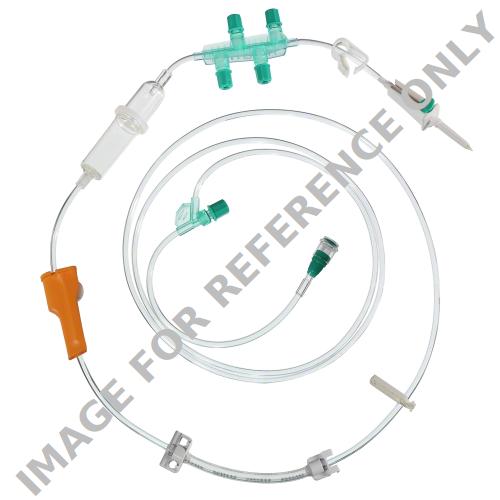 IV administration set for the application of cytostatics. For infusion by compatible pumps.